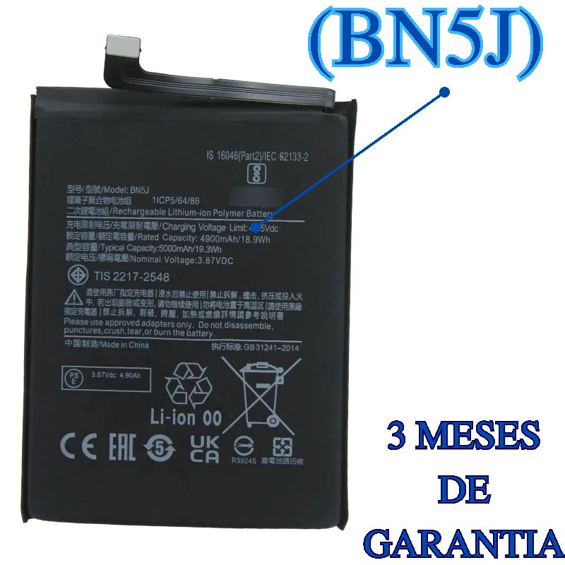 BATERIA ORIGINAL CHINA XIAOMI 12T / 12T PRO / NOTE 12 5G / POCO X5 (BN5J)